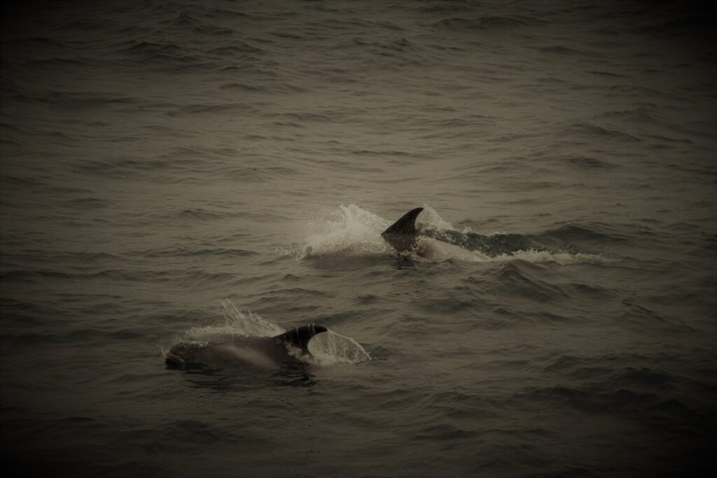 Diese kleinen Schwimmkünstler waren Weißschnauzendelfine, eine endemische Art im Nordatlantik. Es gibt sie in einem Gebiet von Cape Cod bis zur Mündung des Sankt-Lorenz-Stroms und Südgrönland im Westen, um Island herum, weiter in Nordfrankreich und Spitzbergen im Osten. Sie sind fast drei Meter lang und gehören damit zu den größeren Delfinarten, was es umso imposanter macht, wenn sie aus dem Wasser springen. Sie haben eine kurze, kräftige und cremefarben-gelbe Schnauze, was ihnen auch ihren Namen eingebracht hat. Am Rücken und den Seiten sind diese Delfine dunkelgrau bis schwarz, nur an den Seiten haben sie jeweils zwei hellgraue Felder, die auch in nur eines übergehen können. Die Flossen sind schwarz, der Bauch und die Kehle weiß – es sind einfach richtig schöne Tiere. Wie alt die Weißschnauzendelfine werden, weiß man nicht, auch nicht, wann sie ihre Geschlechtsreife erlangen. Manchmal aber werden Schulen von bis zu 1500 Tieren beobachtet. Was muss das für ein Erlebnis sein!
